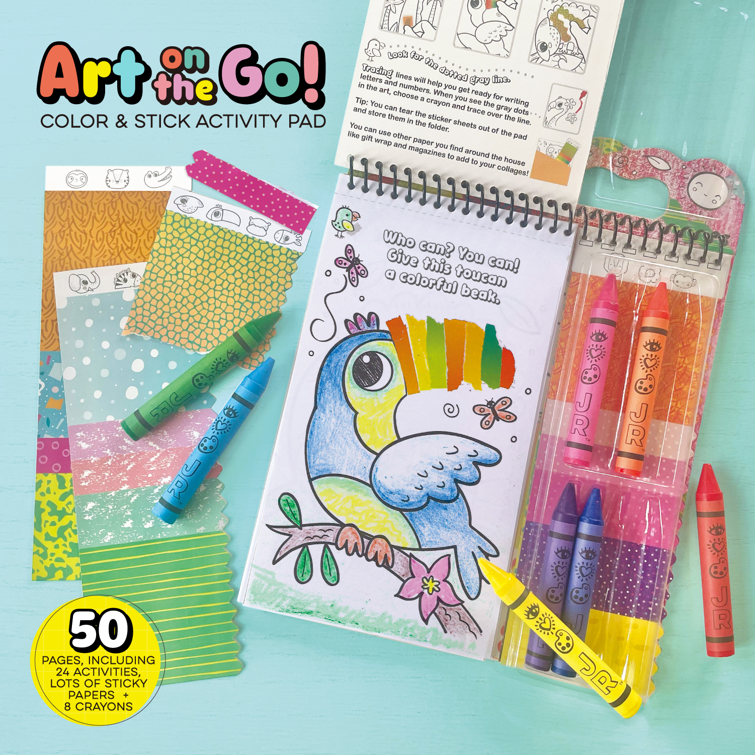 دفتر تلوين و لصق للاطفال مع ألوان يقدم تجربة أنشطة مسلية تضم صفحات للتلوين واللصق مع 8 أقلام شمع سميكة مناسبة للأيدي الصغيرة. تصميم سهل الحمل بفضل المقبض العملي، مواد آمنة وصديقة للبيئة، ويعزز الإبداع والمهارات الحركية والتركيز لتجربة تعليمية ممتعة داخل المنزل أو أثناء السفر.