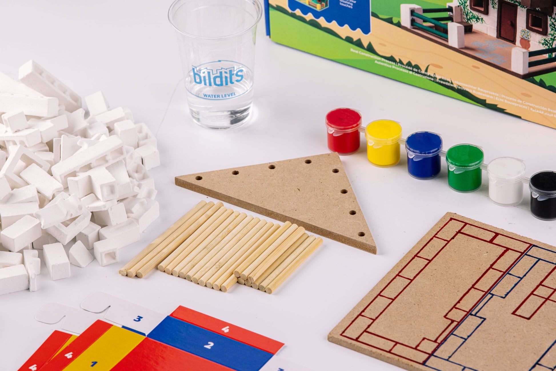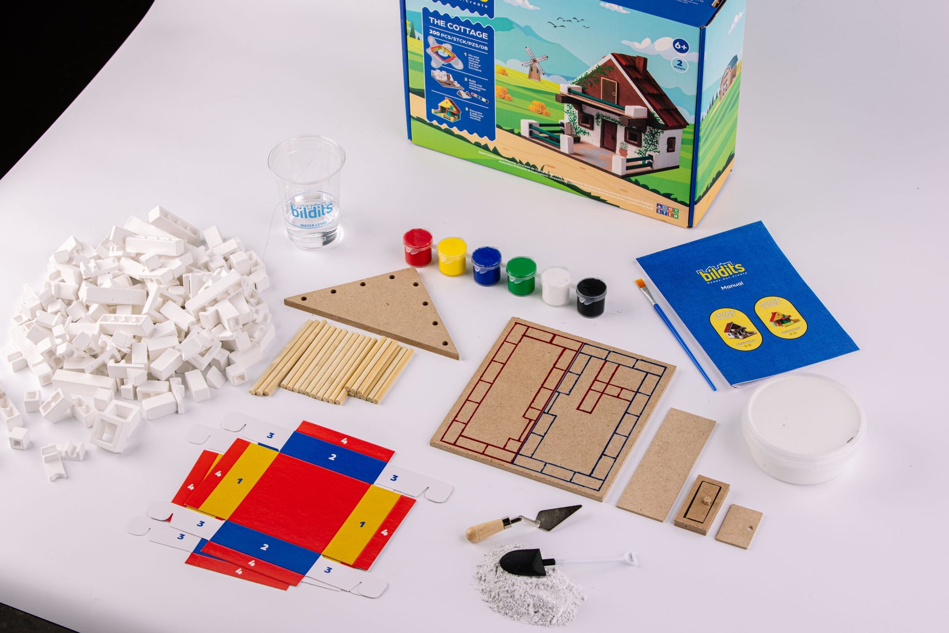 - المكونات: قوالب أوريغامي، خليط إسمنت خاص، أدوات بناء مناسبة للأطفال.