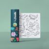 - محتويات العلبة: قطعة سيليكون صغيرة بحجم 30×20 سم، 3 أقلام هي دودل قابلة للمسح.